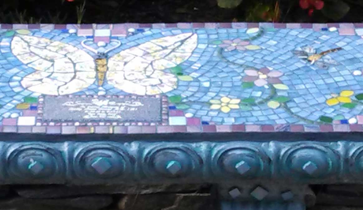 Butterflies and Dragonflies Mosaic Memorial Benches